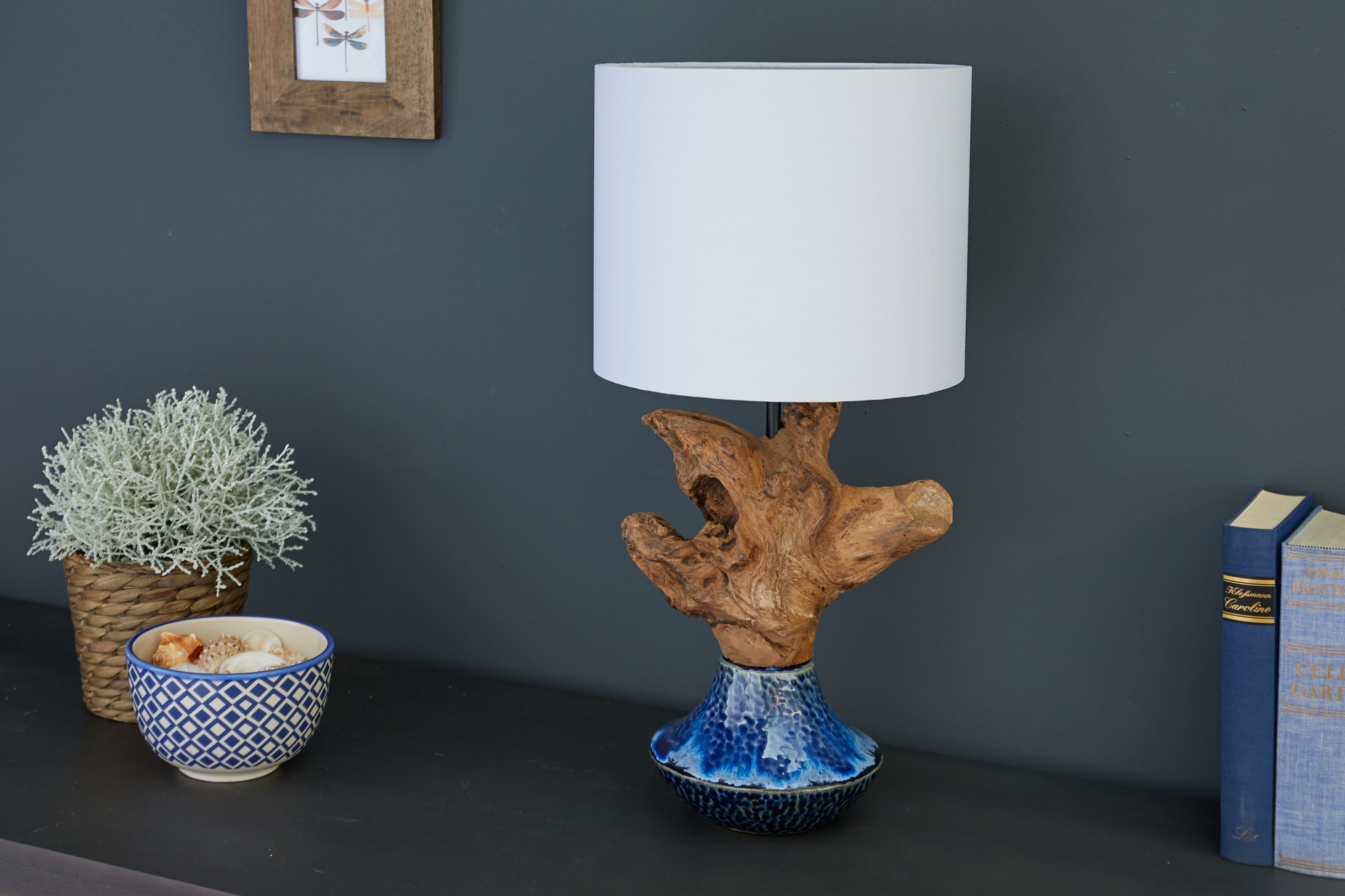 Designová keramická stolní lampa modrá – Grus