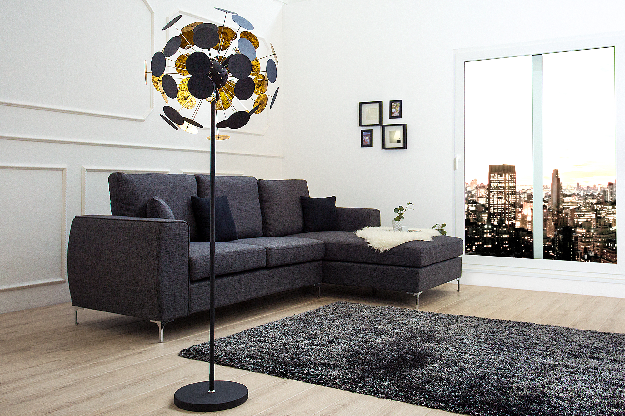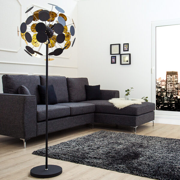 Designová kovová stojací lampa černá – Luego